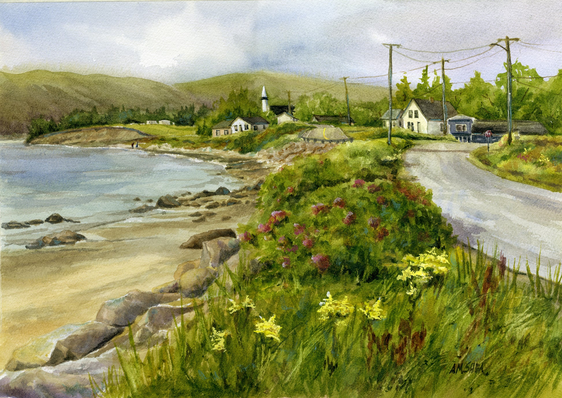 This strip of land along Wharf Road, North Ingonish, produces an array of wildflowers, embracing the Wharf Road Beach area with both the scent and vivid colour of wild roses and Goldenrod.